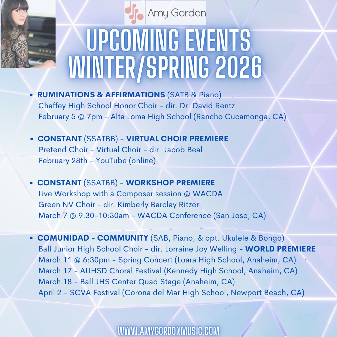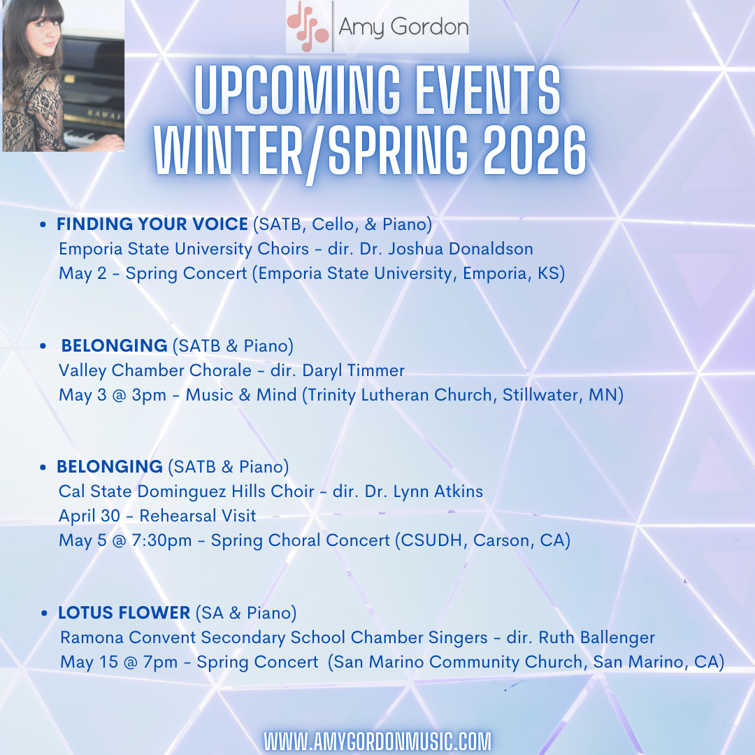 Check out these upcoming Spring performances and composer events featuring Amy Gordon’s music!